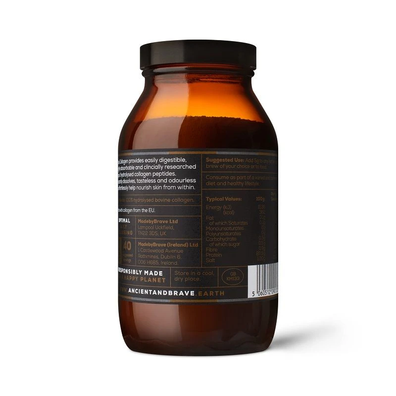 Ancient+Brave True Collagen is of the highest quality and beautifully pure – providing easily digestible, highly absorbable Type 1 hydrolysed collagen peptides. This grass-fed bovine collagen is tasteless, odourless and instantly dissolves, so its perfect to add to hot and cold drinks and workout smoothies.