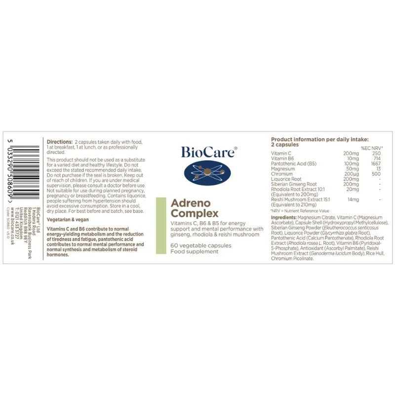Biocare Adreno Complex is a unique combination of powerful nutrients for energy support and mental performance: