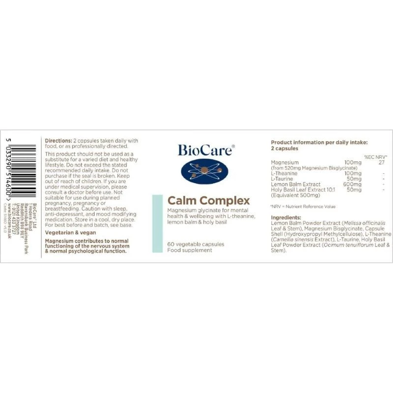 Benefits of Biocare Calm Complex: