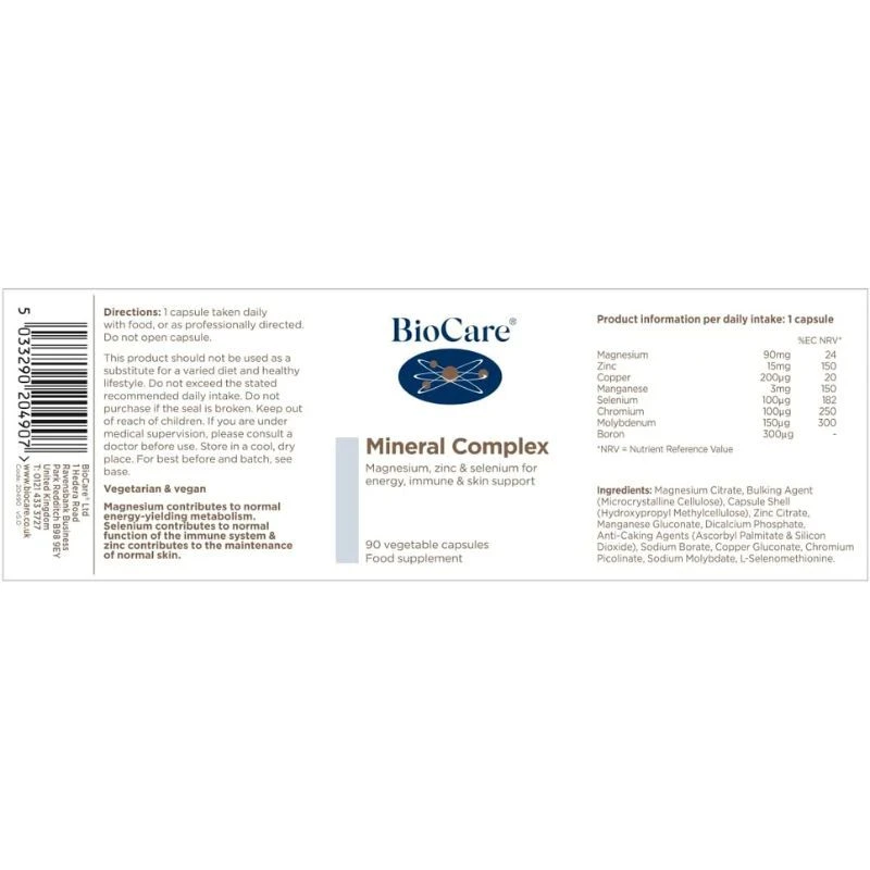 BioCare Mineral Complex is a synergistic blend of magnesium and key trace minerals in a convenient one a day capsule. Provides useful amounts of magnesium, zinc, manganese, silicon, copper, chromium, molybdenum and selenium.