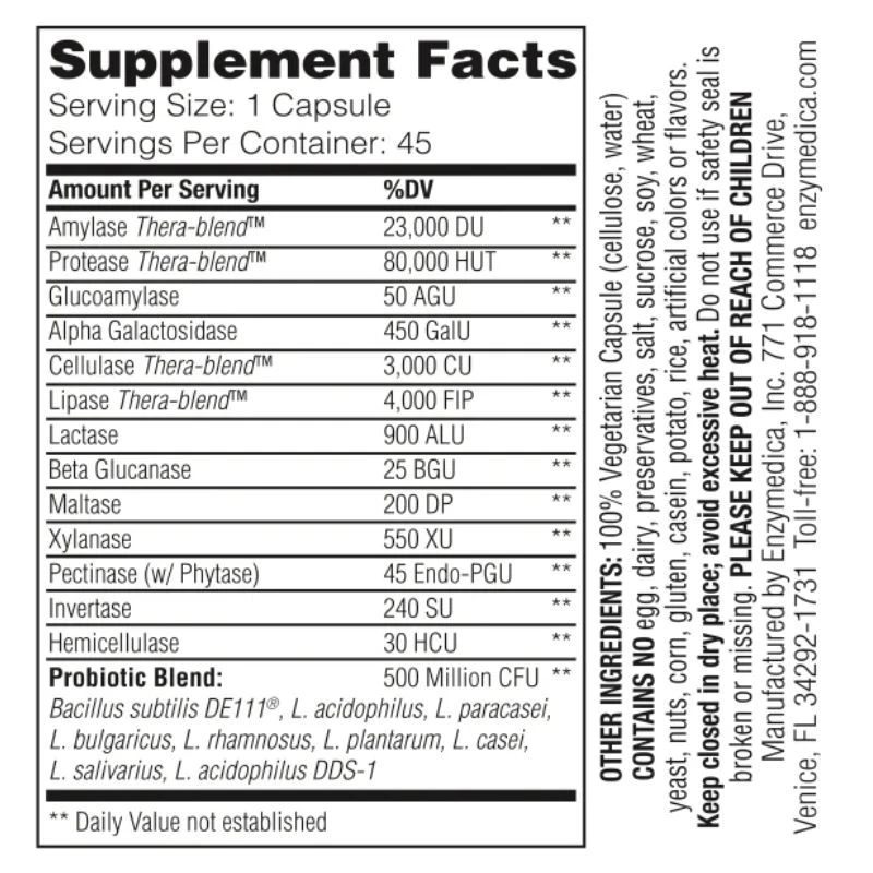 Take 1 capsule with each meal. More may be taken as needed. For higher potencies, Digest +Probiotics or Digest Gold +Probiotics may be helpful.