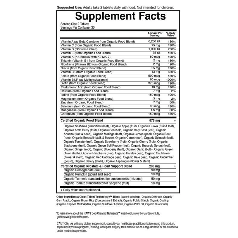 Garden Of Life Mykind Organics Men’s 40+ Multi is a whole food formula that is certified organic, Non-GMO verified and from real nutritious foods.