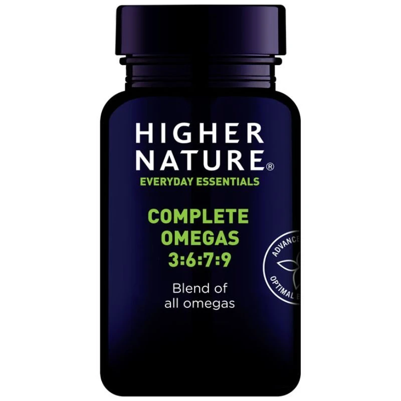 Higher Nature Complete Omega 3-6-7-9 is a complete EPA, DHA, GLA supplement; including omega 7 and 9 complexes.