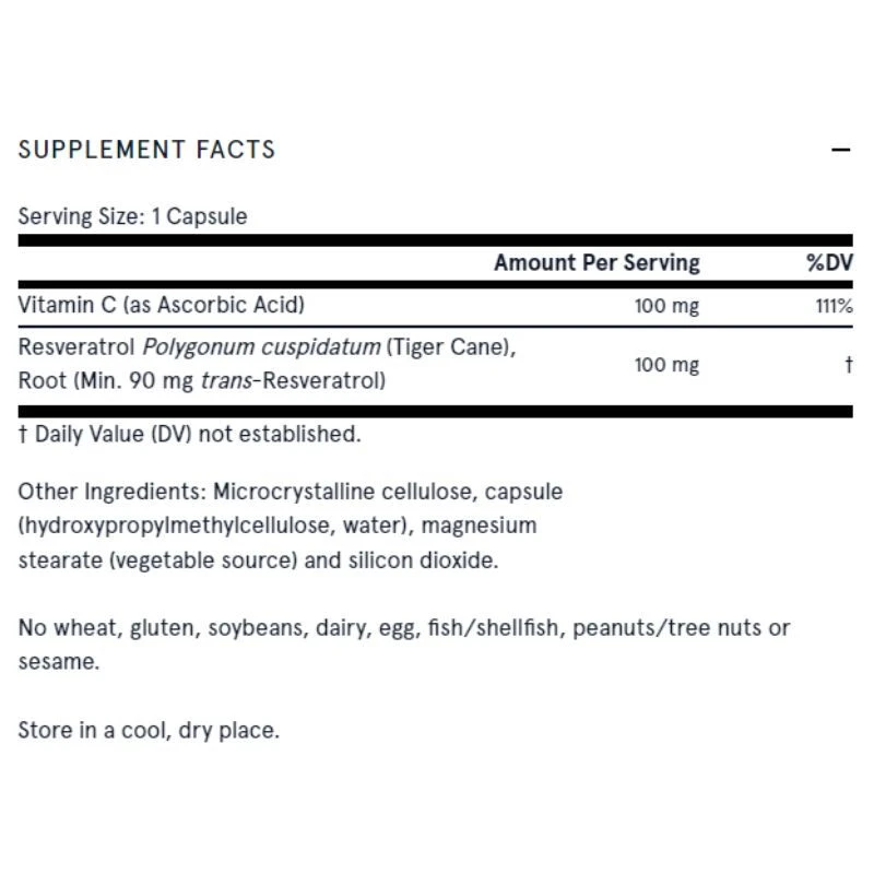 Jarrow Formulas Resveratrol contains 100 mg of resveratrol (3,4’,5-trihydroxystilbene) and resveratrol glucosides (piceids) extracted from Hu zhang (“tiger cane”) root, also known as Polygonum cuspidatum.