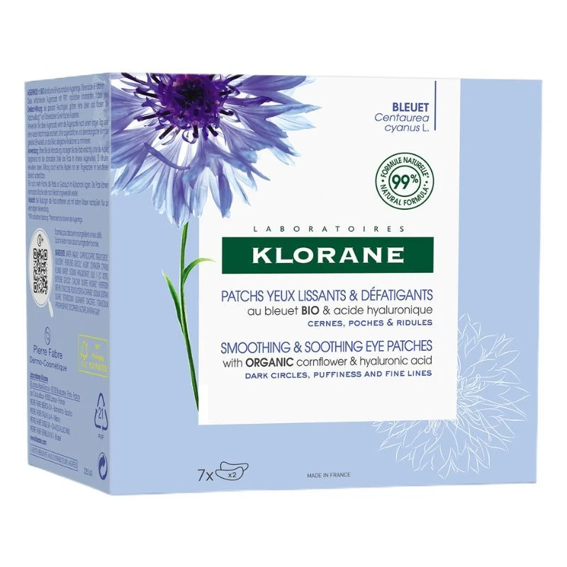Klorane Smoothing & Soothing Eye Patches are hydrogel eye patches to moisturise, smooth fine lines and reduce congestion and puffiness. Eye contours appear visibly smoothed, dark circles lessened and puffiness minimsed in just 15 minutes.Â