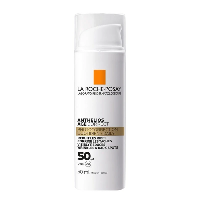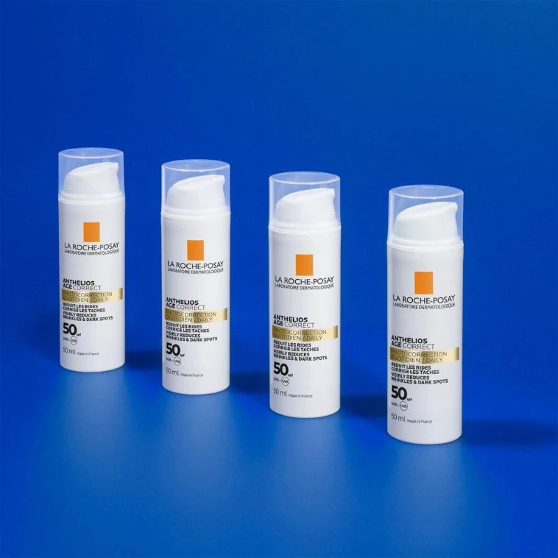 La Roche-Posay Anthelios Age Correct SPF50+ contains dermatological actives to reduce the appearance of wrinkles and dark spots and improve skin elasticity.
