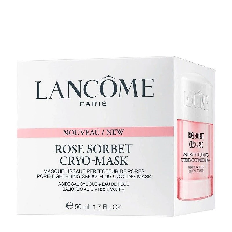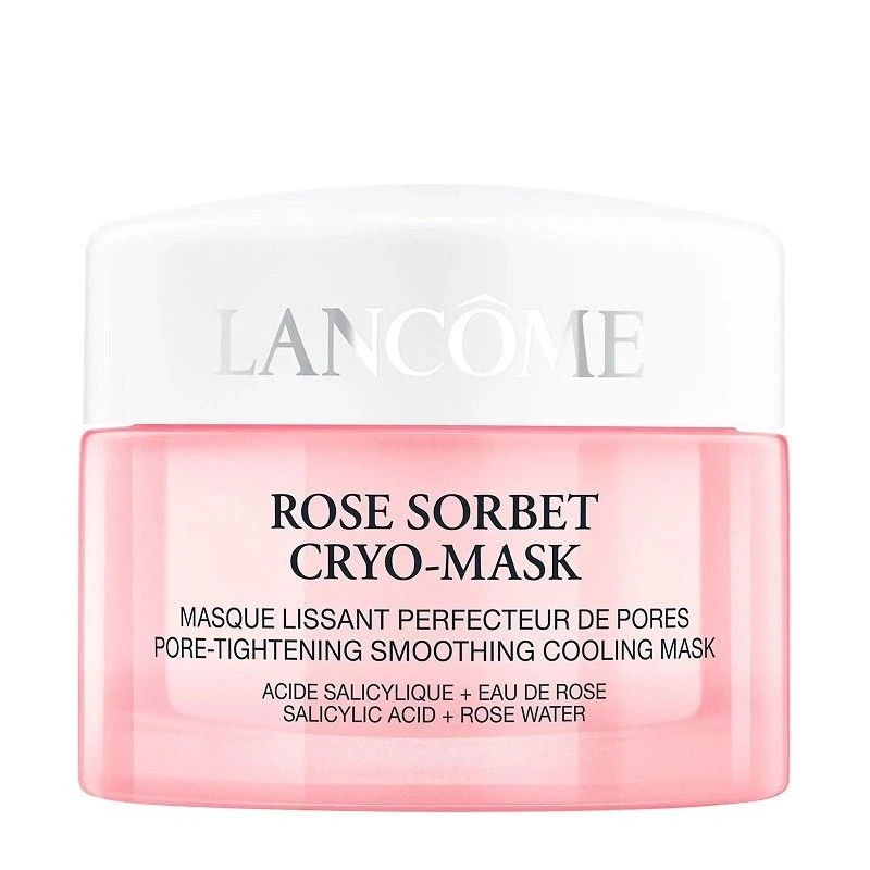 The Lancome Rose Sorbet Cryo-Mask features an irresistible pink sorbet texture providing refreshing sensation to revitalize the look of tired, dull skin.