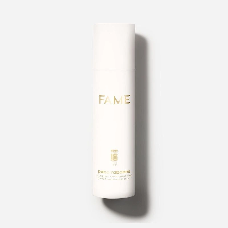 Experience the sensual and feminine FAME perfume with a new deodorant spray from Paco Rabanne. Exceptionally fresh jasmine, succulent mango and creamy incense leave the skin delicately scented throughout the day..