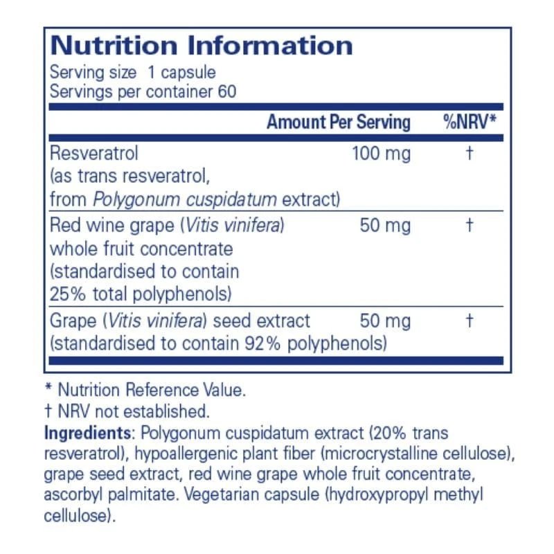 Resveratrol EXTRA combines resveratrol with polyphenols from red wine and grape seed. Features 100 mg trans resveratrol per capsule. The trans-isomer of resveratrol is considered superior to the cis isomer. Grape seed extract and red wine provide additional polyphenols.