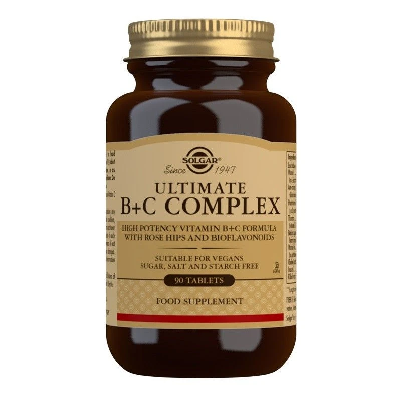 Solgar Ultimate B+C Complex is a high potency Vitamin B and C formula with added rose hips and bioflavonoids.