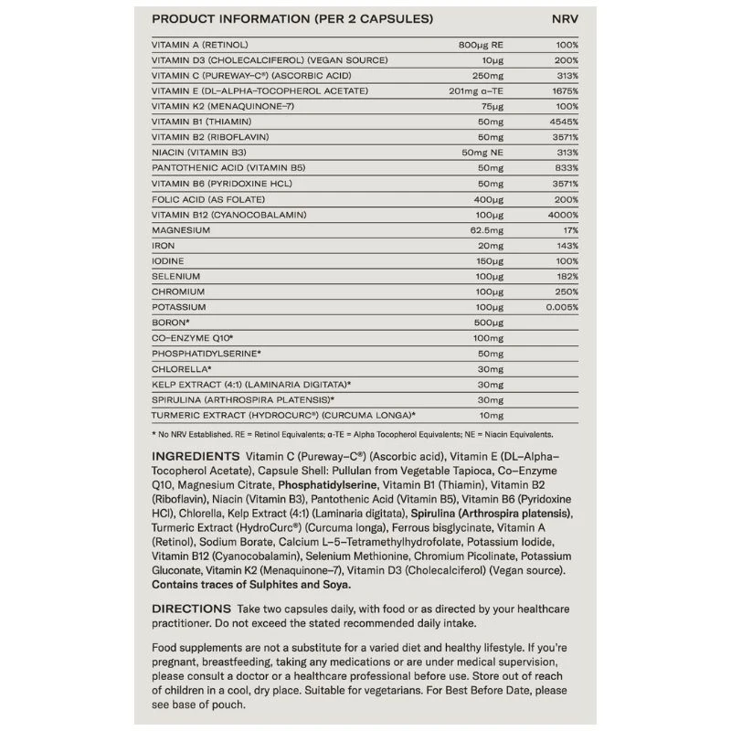 Two capsules deliver a power shot of antioxidants, essential nutrients, and detoxifiers to defend your body against life overload. It’s specially-formulated to replenish low stores of vitamins and minerals by delivering just the right dose required to reach and maintain stellar health.