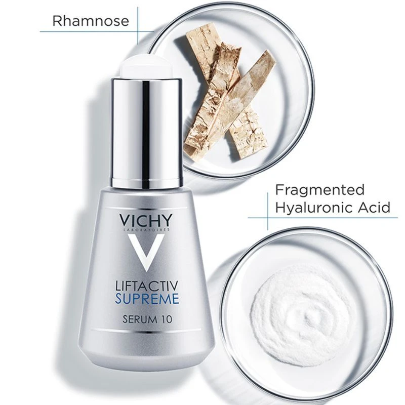 Vichy Liftactiv Serum 10 Supreme is an anti-aging serum that targets 10 signs of aging while accelerating skin cell renewal.