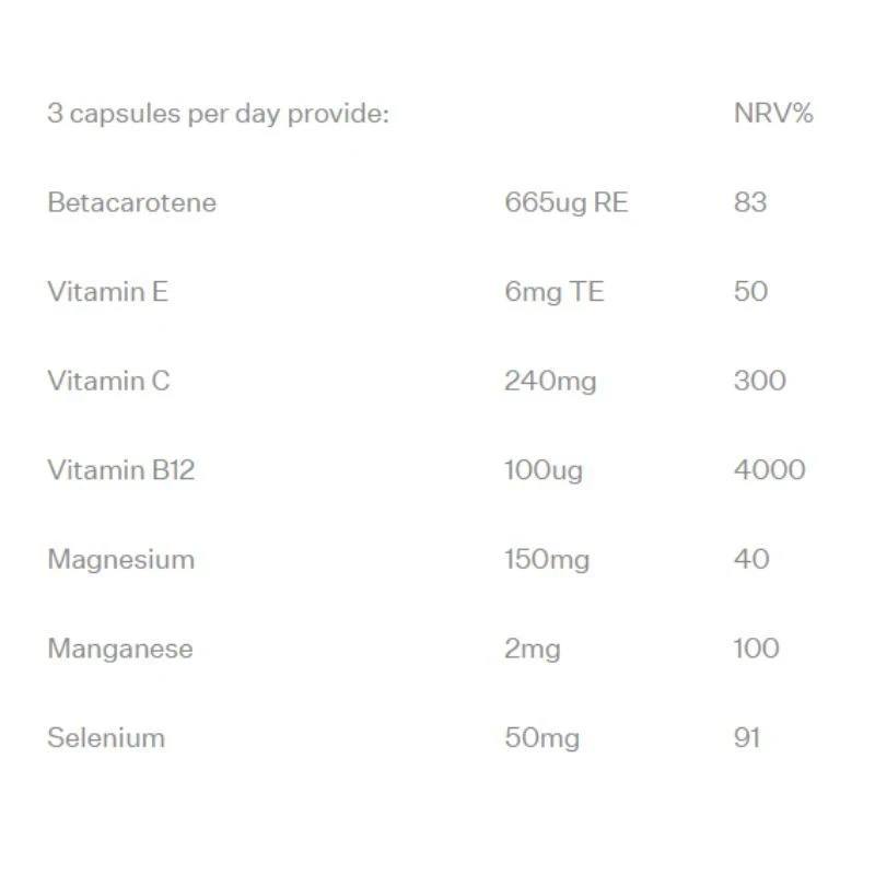 A premium quality, antioxidant “booster” formulation, specially designed as a combination product for use alongside Vitafem or any other good quality multivitamin and mineral supplement.